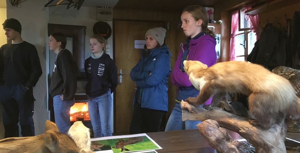 Im Rahmen der Biosphärentage lernte die Abschlussklasse von Hasle die Jagd kennen. Trotz des garstigen Wetters haben die Schülerinnen und Schüler interessiert und aktiv an den spannenden Demonstrationen und Beiträgen an den verschiedenen Posten teilgenommen.