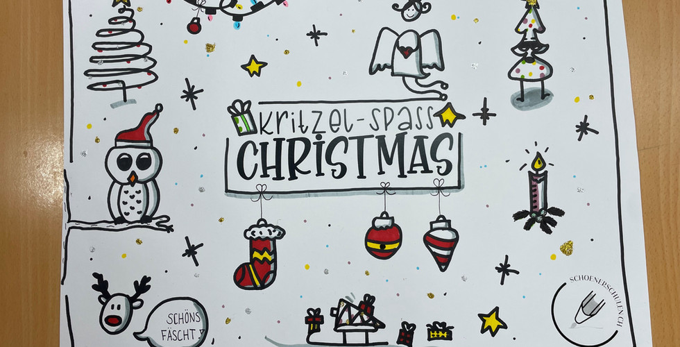 Am Morgen des 5. Dezembers durften die 5./6. Klässler am weihnachtlichen Kritzelspass von Schönerschulen teilnehmen. Via Zoom wurden die Schülerinnen und Schüler von der Kursleiterin angeleitet mit schwarzen Stiften festliche Motive zu kritzeln, diese mit grauen Stiften zu schattieren und mit farbigen Stiften Akzente zu setzen. In gemütlicher Atmosphäre entstanden zahlreiche kreative Zeichnungen rund um Sterne, Tannenbäume und weitere festliche Motive.